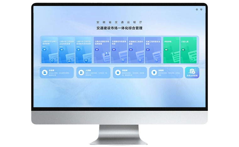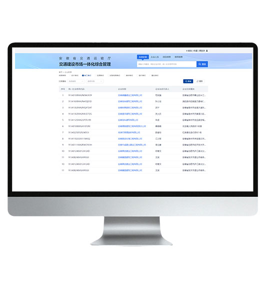 针对交通建设市场信息孤岛、信用归集不全、动态监管滞后等痛点,以及人工管理效率低、数据价值应用不足的问题,我公司承建了安徽省交通建设市场一体化综合管理项目。该项目由安徽省交通运输厅主管、省交通运输综合执法监督局实施,聚焦“信用-资质-招投标-监管-质量-造价”全环节,打造8大业务应用板块。
